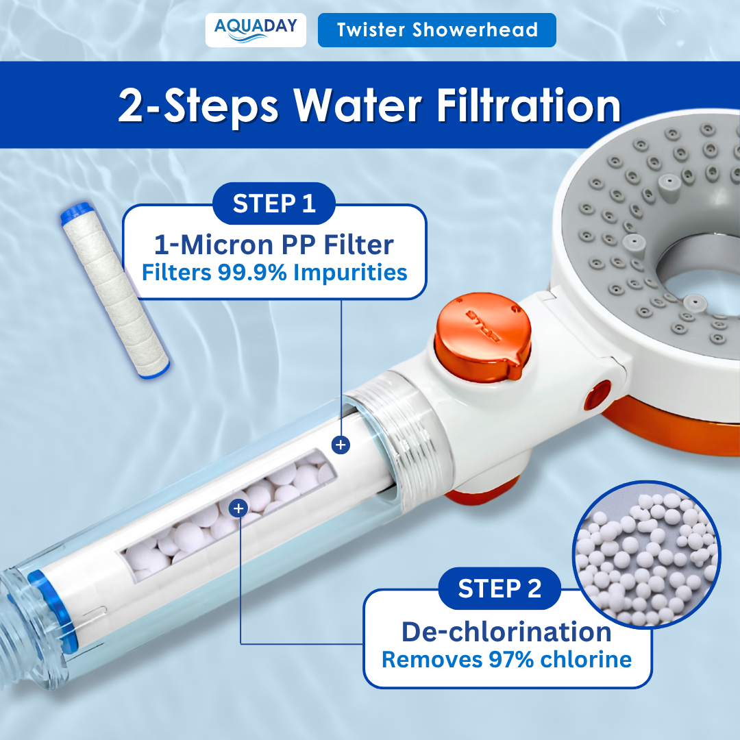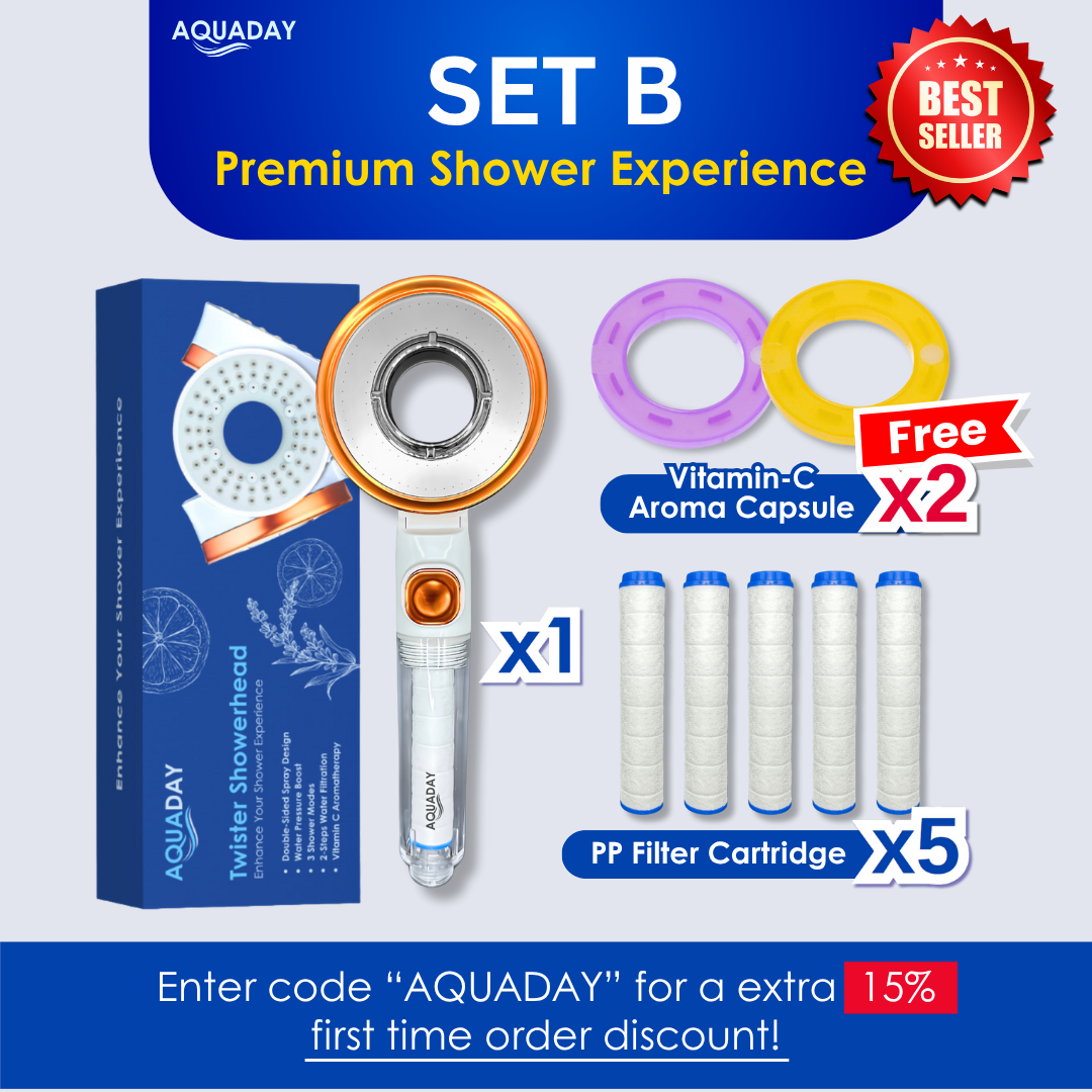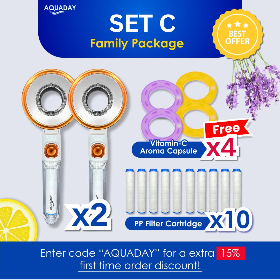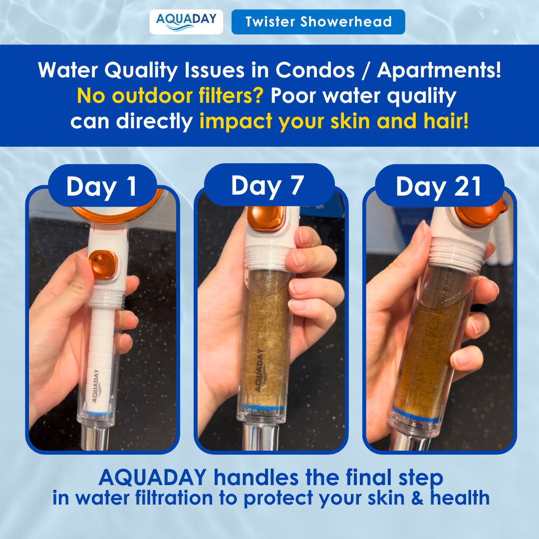 The water pressure is strong. No need to shower slowly anymore! With water filter, my husband’s skin doesn’t itch like before, and the water even smells great. We really enjoy using it. Thank you, Aquaday!