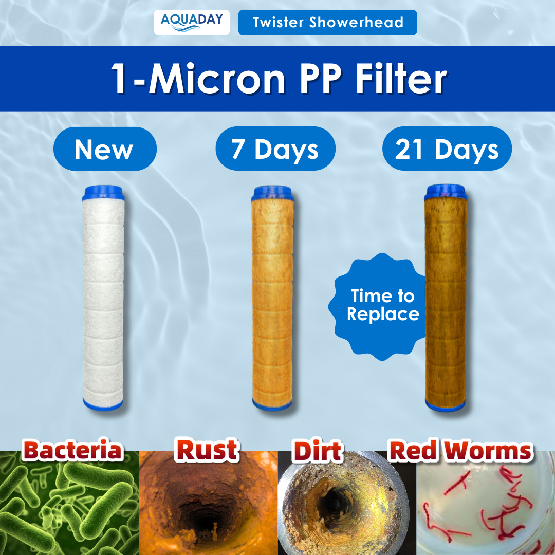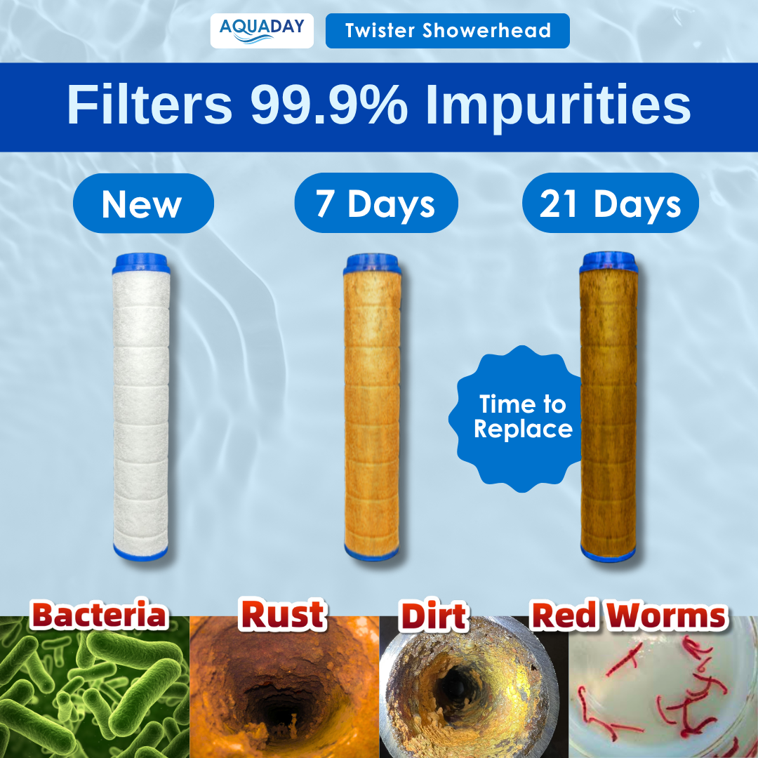 ✅We recommend replacing it every 3–4 weeks, depends on your home water quality. When the filter turns dark brown, it's time to replace it.